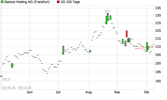 Mit dem Anstieg auf 210,40 EUR hat die Bâloise-Holding-Aktie am 07.10.2025 die 100-Tage-Linie nach oben gekreuzt.Die Bâloise-Holding-Aktie befindet sich seit dem 03.05.2024 im langfristigen ...weiterlesen