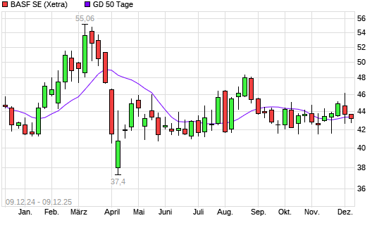 Mit dem Anstieg auf 44,15 EUR hat die BASF-Aktie am 29.12.2025 die 100-Tage-Linie nach oben gekreuzt.Die BASF-Aktie befindet sich seit dem 26.12.2025 im langfristigen Aufwärtstrend und hat in ...weiterlesen