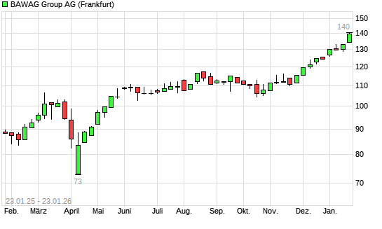 Mit dem Anstieg auf 139,50 EUR hat die BAWAG Group-Aktie (ISIN AT0000BAWAG2) am 22.01.2026 ein neues All-Time-High erreicht und damit den Kurs vom 21.01.2026 eingestellt.Die BAWAG Group-Aktie ...weiterlesen