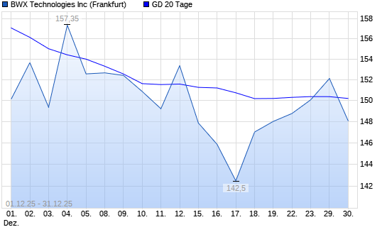 Mit dem Rücksetzer auf 148,05 EUR hat die BWX Technologies-Aktie am 30.12.2025 die 20-Tage-Linie nach unten gekreuzt.Die BWX Technologies-Aktie befindet sich seit dem 26.05.2025 im langfristigen ...weiterlesen