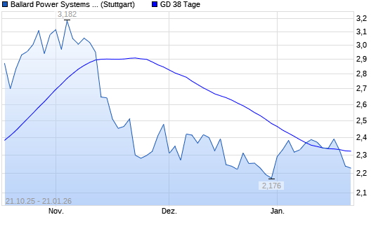 Mit dem Rücksetzer auf 1,97 EUR hat die Ballard Power-Aktie am 30.01.2026 die 200-Tage-Linie nach unten gekreuzt.Die Ballard Power-Aktie befand sich seit dem 30.06.2025 im langfristigen ...weiterlesen