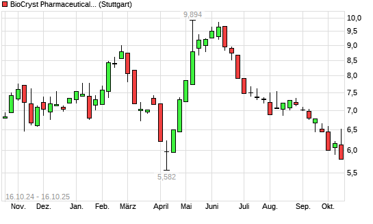 Mit dem Rücksetzer auf 5,51 EUR hat die Biocryst Pharmaceuticals-Aktie (ISIN US09058V1035) am 15.10.2025 ein neues 12-Monats-Tief erreicht und damit den Kurs vom 11.04.2025 eingestellt.Die ...weiterlesen