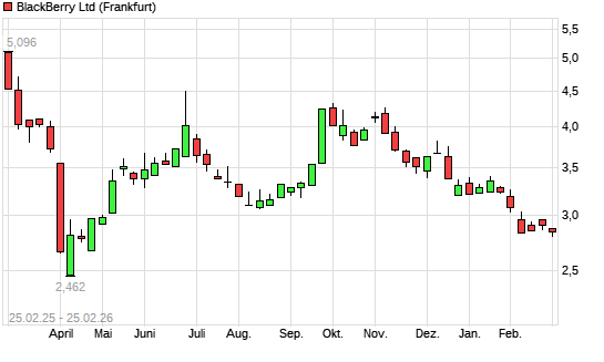 Mit dem Rücksetzer auf 2,80 EUR hat die Blackberry-Aktie (ISIN CA09228F1036) am 24.02.2026 ein neues 6-Monats-Tief erreicht und damit den Kurs vom 06.02.2026 ...weiterlesen