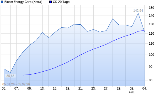 Mit dem Rücksetzer auf 119,00 EUR hat die Bloom Energy A-Aktie am 04.02.2026 die 20-Tage-Linie nach unten gekreuzt.Die Bloom Energy A-Aktie befindet sich seit dem 02.07.2025 im langfristigen ...weiterlesen