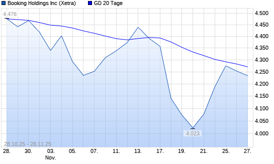 Mit dem Anstieg auf 4.257,00 EUR hat die Booking Holdings-Aktie am 27.11.2025 die 20-Tage-Linie nach oben gekreuzt.Die Booking Holdings-Aktie befindet sich seit dem 29.10.2025 im langfristigen ...weiterlesen