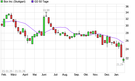 Mit dem Anstieg auf 25,99 EUR hat die Box-Aktie am 20.01.2026 die 50-Tage-Linie nach oben gekreuzt.Die Box-Aktie befindet sich seit dem 23.06.2025 im langfristigen Abwärtstrend und hat in diesem ...weiterlesen