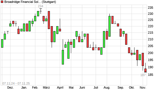 Mit dem Rücksetzer auf 187,00 EUR hat die Broadridge Financial-Aktie (ISIN US11133T1034) am 06.11.2025 ein neues 12-Monats-Tief erreicht und damit den Kurs vom 29.10.2025 eingestellt.Die ...weiterlesen