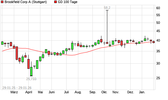 Mit dem Rücksetzer auf 39,00 EUR hat die Brookfield Asset Management-Aktie am 28.01.2026 die 100-Tage-Linie nach unten gekreuzt.Die Brookfield Asset Management-Aktie befindet sich seit ...weiterlesen