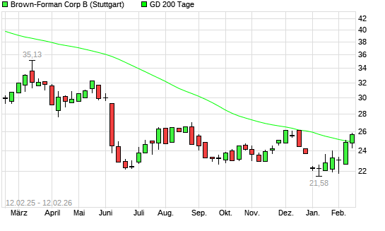 Mit dem Anstieg auf 24,88 EUR hat die Brown-Forman B-Aktie am 11.02.2026 die 200-Tage-Linie nach oben gekreuzt.Die Brown-Forman B-Aktie befand sich seit dem 17.12.2025 im langfristigen Aufwärtstrend ...weiterlesen