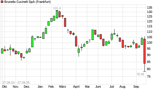 Mit dem Rücksetzer auf 84,00 EUR hat die Brunello Cucinelli-Aktie (ISIN IT0004764699) am 26.09.2025 ein neues 12-Monats-Tief erreicht und damit den Kurs vom 26.09.2024 eingestellt.Die Brunello ...weiterlesen