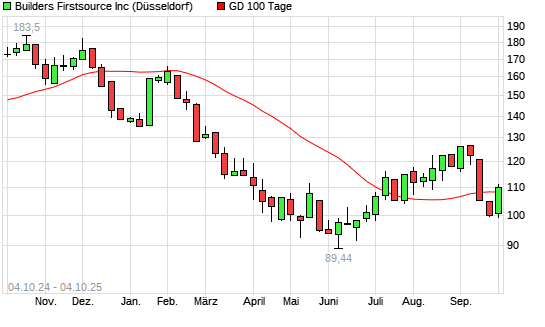 Mit dem Anstieg auf 108,40 EUR hat die Builders Firstsource-Aktie am 03.10.2025 die 100-Tage-Linie nach oben gekreuzt.Die Builders Firstsource-Aktie befindet sich seit dem 15.09.2025 im langfristigen ...weiterlesen