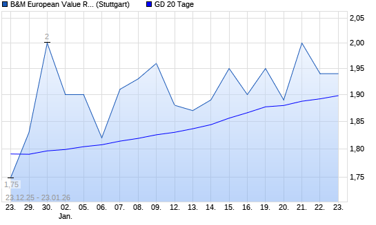 Mit dem Anstieg auf 1,93 EUR hat die B&M European Value Retail Ord-Aktie am 22.01.2026 die 20-Tage-Linie nach oben gekreuzt.Die B&M European Value Retail Ord-Aktie befindet sich seit dem ...weiterlesen