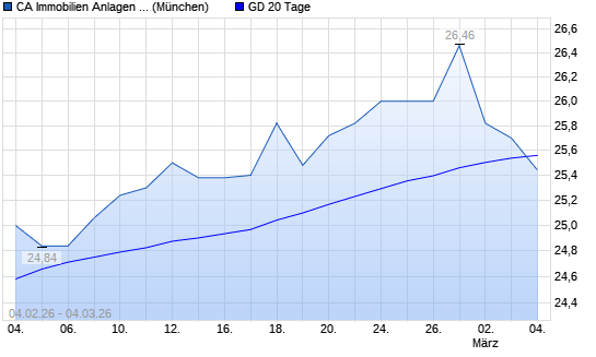 Mit dem Rücksetzer auf 25,48 EUR hat die CA Immobilien Anlagen-Aktie am 03.03.2026 die 20-Tage-Linie nach unten gekreuzt.Die CA Immobilien Anlagen-Aktie befindet sich seit ...weiterlesen