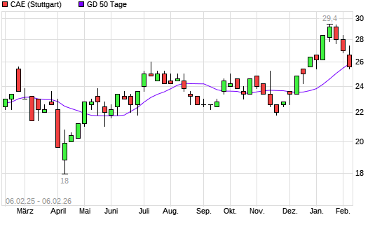 Mit dem Rücksetzer auf 25,80 EUR hat die CAE-Aktie am 05.02.2026 die 50-Tage-Linie nach unten gekreuzt.Die CAE-Aktie befindet sich seit dem 04.12.2025 im langfristigen Aufwärtstrend und ...weiterlesen