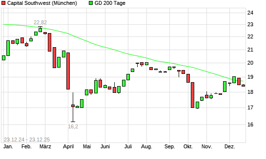Mit dem Anstieg auf 18,71 EUR hat die CAPITAL SOUTHWEST CORPORATION-Aktie am 22.12.2025 die 200-Tage-Linie nach oben gekreuzt.Die CAPITAL SOUTHWEST CORPORATION-Aktie befand sich seit dem 18.12.2025 ...weiterlesen
