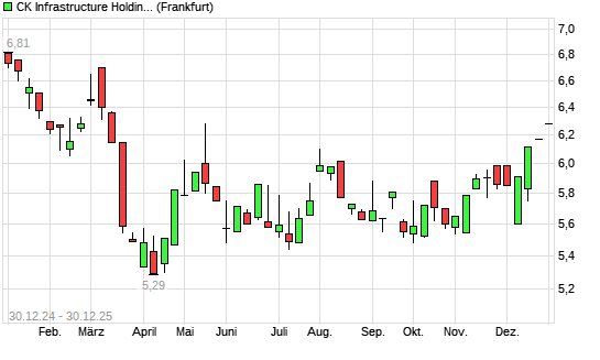 Mit dem Anstieg auf 7,10 EUR hat die CK Infrastructure Holdings-Aktie (ISIN BMG2178K1009) am 23.01.2026 ein neues 5-Jahres-Hoch erreicht und damit den Kurs vom 10.09.2024 ...weiterlesen