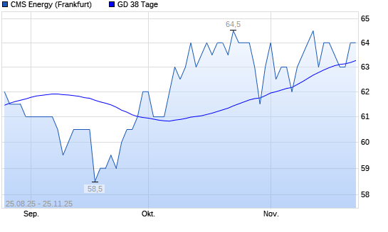 Mit dem Anstieg auf 64,00 EUR hat die CMS Energy-Aktie am 24.11.2025 die 38-Tage-Linie nach oben gekreuzt.Die CMS Energy-Aktie befindet sich seit dem 17.11.2025 im langfristigen Aufwärtstrend ...weiterlesen