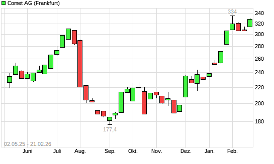 Mit dem Anstieg auf 328,00 EUR hat die COMET N1-Aktie (ISIN CH0360826991) am 20.02.2026 ein neues 12-Monats-Hoch erreicht und damit den Kurs vom 19.02.2026 eingestellt.Die COMET ...weiterlesen