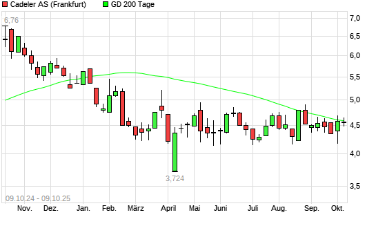 Mit dem Anstieg auf 4,60 EUR hat die Cadeler-Aktie am 08.10.2025 die 200-Tage-Linie nach oben gekreuzt.Die Cadeler-Aktie befand sich seit dem 07.10.2025 im langfristigen Abwärtstrend und hat ...weiterlesen