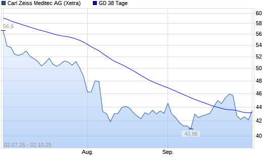 Mit dem Anstieg auf 43,56 EUR hat die Carl Zeiss Meditec-Aktie am 01.10.2025 die 38-Tage-Linie nach oben gekreuzt.Die Carl Zeiss Meditec-Aktie befindet sich seit dem 20.06.2025 im langfristigen ...weiterlesen