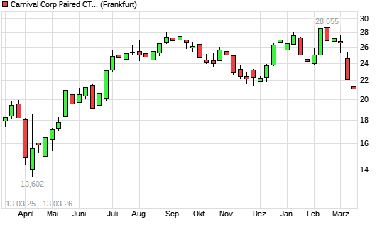 Mit dem Rücksetzer auf 21,19 EUR hat die Carnival Corporation-Aktie (ISIN PA1436583006) am 12.03.2026 ein neues 6-Monats-Tief erreicht und damit den Kurs vom ...weiterlesen