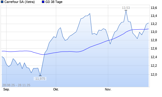 Mit dem Anstieg auf 13,19 EUR hat die Carrefour-Aktie am 27.11.2025 die 38-Tage-Linie nach oben gekreuzt.Die Carrefour-Aktie befindet sich seit dem 26.11.2025 im langfristigen Aufwärtstrend ...weiterlesen
