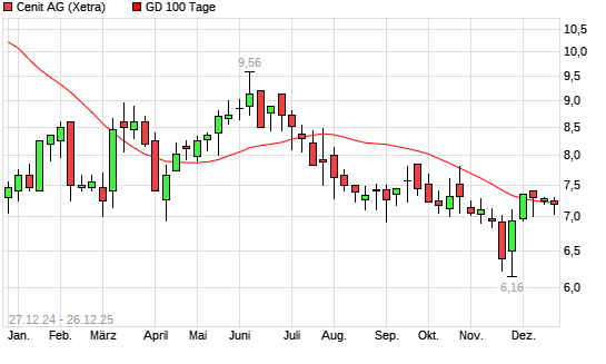 Mit dem Anstieg auf 7,16 EUR hat die Cenit-Aktie am 25.12.2025 die 100-Tage-Linie nach oben gekreuzt.Die Cenit-Aktie befindet sich seit dem 14.07.2025 im langfristigen Abwärtstrend und hat in ...weiterlesen