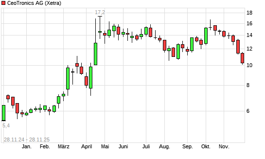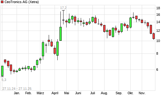 Mit dem Rücksetzer auf 10,25 EUR hat die CeoTronics-Aktie (ISIN DE0005407407) am 27.11.2025 ein neues 6-Monats-Tief erreicht und damit den Kurs vom 26.11.2025 eingestellt.Die CeoTronics-Aktie ...weiterlesen