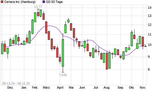 Mit dem Rücksetzer auf 9,93 EUR hat die Certara-Aktie am 05.11.2025 die 50-Tage-Linie nach unten gekreuzt.Die Certara-Aktie befindet sich seit dem 29.10.2025 im langfristigen Abwärtstrend ...weiterlesen