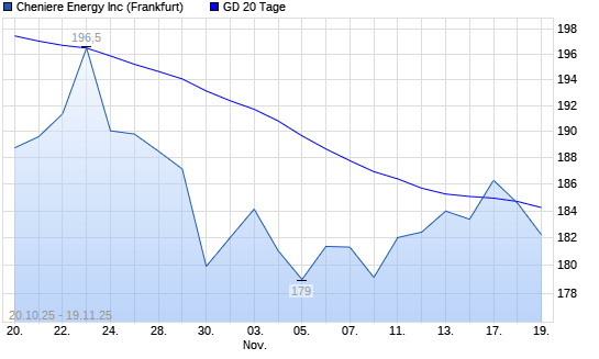 Mit dem Rücksetzer auf 184,60 EUR hat die Cheniere Energy-Aktie am 18.11.2025 die 20-Tage-Linie nach unten gekreuzt.Die Cheniere Energy-Aktie befindet sich seit dem 03.09.2025 im langfristigen ...weiterlesen