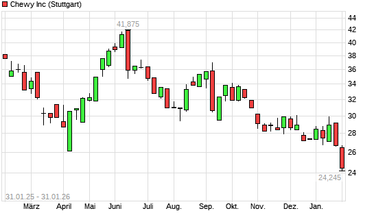 Mit dem Rücksetzer auf 24,71 EUR hat die Chewy-Aktie (ISIN US16679L1098) am 30.01.2026 ein neues 12-Monats-Tief erreicht und damit den Kurs vom 29.01.2026 eingestellt.Die Chewy-Aktie befindet ...weiterlesen