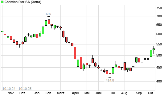 Mit dem Anstieg auf 542,00 EUR hat die Christian Dior-Aktie (ISIN FR0000130403) am 09.10.2025 ein neues 6-Monats-Hoch erreicht und damit den Kurs vom 08.10.2025 eingestellt.Die Christian Dior-Aktie ...weiterlesen