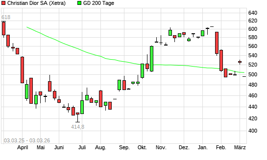 Mit dem Rücksetzer auf 497,00 EUR hat die Christian Dior-Aktie am 02.03.2026 die 200-Tage-Linie nach unten gekreuzt.Die Christian Dior-Aktie befand sich seit dem 23.02.2026 ...weiterlesen