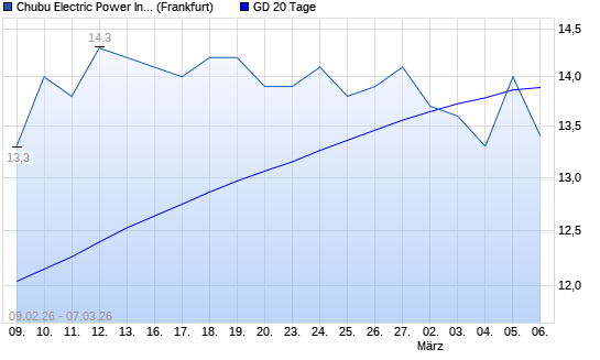 Mit dem Rücksetzer auf 13,40 EUR hat die Chubu Electric Power-Aktie am 06.03.2026 die 20-Tage-Linie nach unten gekreuzt.Die Chubu Electric Power-Aktie befindet sich seit ...weiterlesen