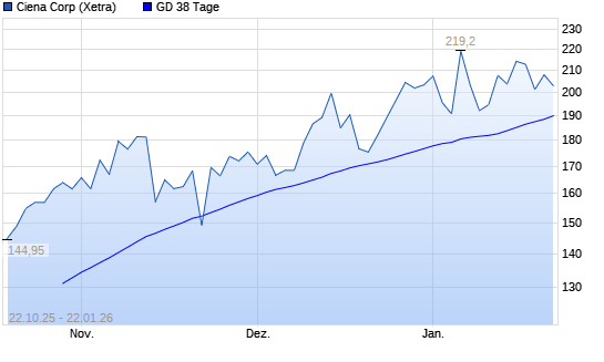 Mit dem Rücksetzer auf 196,00 EUR hat die Ciena-Aktie am 22.01.2026 die 20-Tage-Linie nach unten gekreuzt.Die Ciena-Aktie befindet sich seit dem 15.07.2025 im langfristigen Aufwärtstrend ...weiterlesen