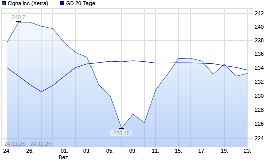 Mit dem Anstieg auf 232,65 EUR hat die Cigna-Aktie am 23.12.2025 die 20-Tage-Linie nach oben gekreuzt.Die Cigna-Aktie befindet sich seit dem 13.05.2025 im langfristigen Abwärtstrend und hat ...weiterlesen