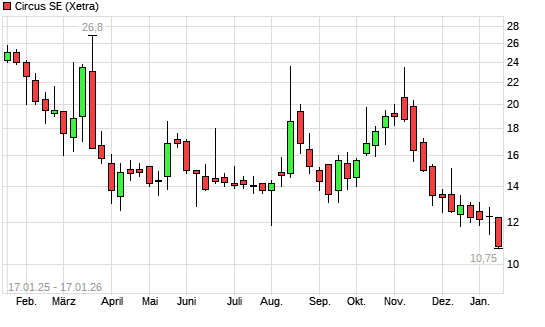 Mit dem Rücksetzer auf 10,75 EUR hat die Circus-Aktie (ISIN DE000A2YN355) am 16.01.2026 ein neues 12-Monats-Tief erreicht und damit den Kurs vom 15.01.2026 eingestellt.Die Circus-Aktie ...weiterlesen