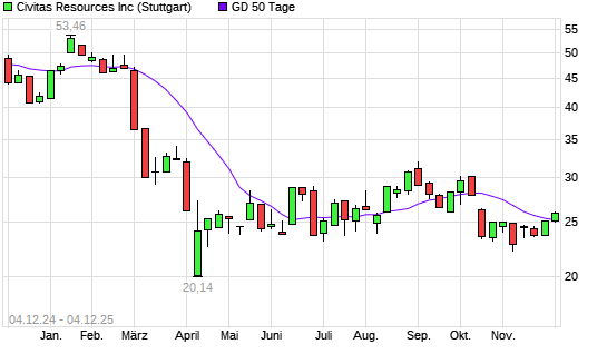 Mit dem Anstieg auf 25,97 EUR hat die Civitas Resources-Aktie am 03.12.2025 die 50-Tage-Linie nach oben gekreuzt.Der Abstand zur 200-Tage-Linie beträgt aktuell -3,16%. ##trendBox## Die ...weiterlesen