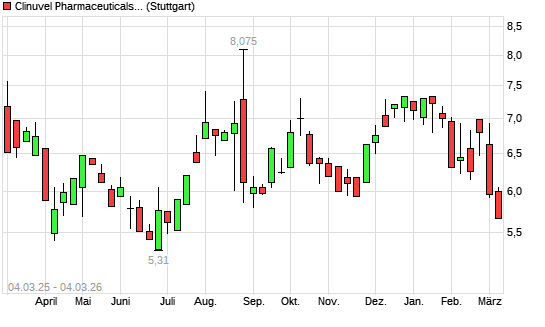 Mit dem Rücksetzer auf 5,79 EUR hat die Clinuvel Pharmaceuticals-Aktie (ISIN AU000000CUV3) am 03.03.2026 ein neues 6-Monats-Tief erreicht und damit den Kurs vom ...weiterlesen