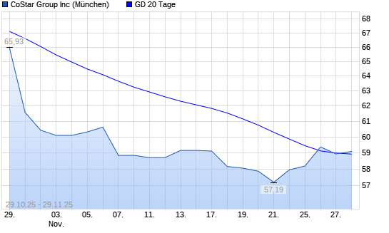 Mit dem Anstieg auf 59,79 EUR hat die CoStar-Aktie am 28.11.2025 die 20-Tage-Linie nach oben gekreuzt.Die CoStar-Aktie befindet sich seit dem 07.10.2025 im langfristigen Abwärtstrend und hat ...weiterlesen