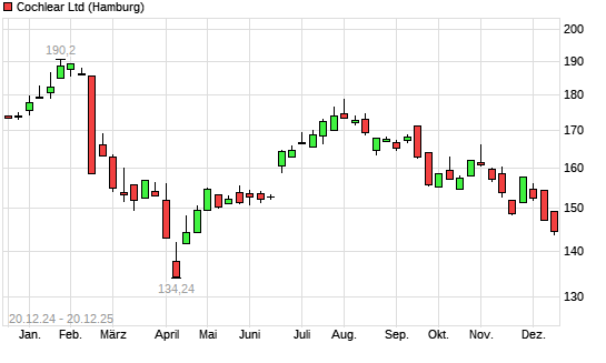 Mit dem Rücksetzer auf 145,04 EUR hat die Cochlear-Aktie (ISIN AU000000COH5) am 19.12.2025 ein neues 6-Monats-Tief erreicht und damit den Kurs vom 18.12.2025 eingestellt.Die Cochlear-Aktie ...weiterlesen