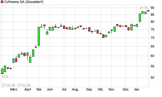 Mit dem Anstieg auf 87,65 EUR hat die Cofinimmo-Aktie (ISIN BE0003593044) am 26.01.2026 ein neues 12-Monats-Hoch erreicht und damit den Kurs vom 16.01.2026 eingestellt.Die Cofinimmo-Aktie befindet ...weiterlesen