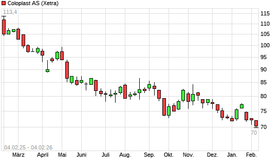 Mit dem Rücksetzer auf 70,70 EUR hat die Coloplast-Aktie (ISIN DK0060448595) am 03.02.2026 ein neues 5-Jahres-Tief erreicht und damit den Kurs vom 28.01.2026 eingestellt.Die Coloplast-Aktie ...weiterlesen