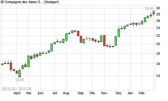 Mit dem Anstieg auf 29,15 EUR hat die CIE DES ALPES (CDA)-Aktie (ISIN FR0000053324) am 27.02.2026 ein neues All-Time-High erreicht und damit den Kurs vom ...weiterlesen