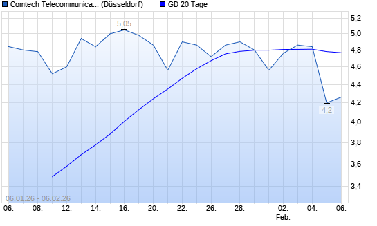 Mit dem Rücksetzer auf 4,42 EUR hat die Comtech Telecommunication-Aktie am 05.02.2026 die 20-Tage-Linie nach unten gekreuzt.Die Comtech Telecommunication-Aktie befindet sich seit dem 26.09.2025 ...weiterlesen