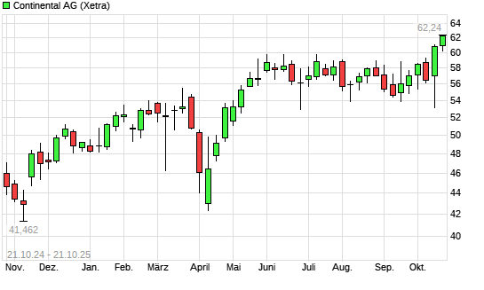 Mit dem Anstieg auf 62,38 EUR hat die Continental-Aktie (ISIN DE0005439004) am 20.10.2025 ein neues 3-Jahres-Hoch erreicht und damit den Kurs vom 17.10.2025 eingestellt.Die Continental-Aktie ...weiterlesen