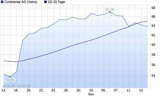 Mit dem Rücksetzer auf 62,96 EUR hat die Continental-Aktie am 13.11.2025 die 20-Tage-Linie nach unten gekreuzt.Die Continental-Aktie befindet sich seit dem 16.10.2025 im langfristigen Aufwärtstrend ...weiterlesen