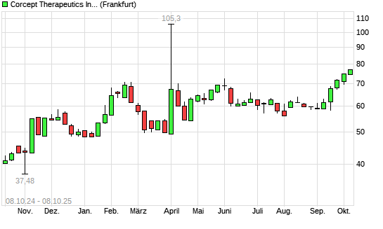 Mit dem Anstieg auf 76,92 EUR hat die Corcept Therapeuticsorpora-Aktie (ISIN US2183521028) am 07.10.2025 ein neues 6-Monats-Hoch erreicht und damit den Kurs vom 06.10.2025 eingestellt.Die Corcept ...weiterlesen