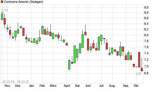 Mit dem Rücksetzer auf 7,03 EUR hat die Corticeira Amorim-Aktie (ISIN PTCOR0AE0006) am 15.10.2025 ein neues 6-Monats-Tief erreicht und damit den Kurs vom 08.10.2025 eingestellt.Die Corticeira ...weiterlesen