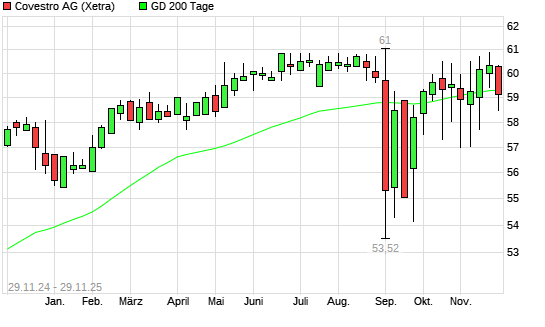 Mit dem Anstieg auf 59,42 EUR hat die Covestro-Aktie am 28.11.2025 die 200-Tage-Linie nach oben gekreuzt.Die Covestro-Aktie befand sich seit dem 25.11.2025 im langfristigen Abwärtstrend und ...weiterlesen